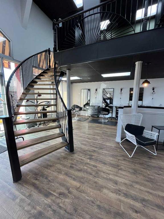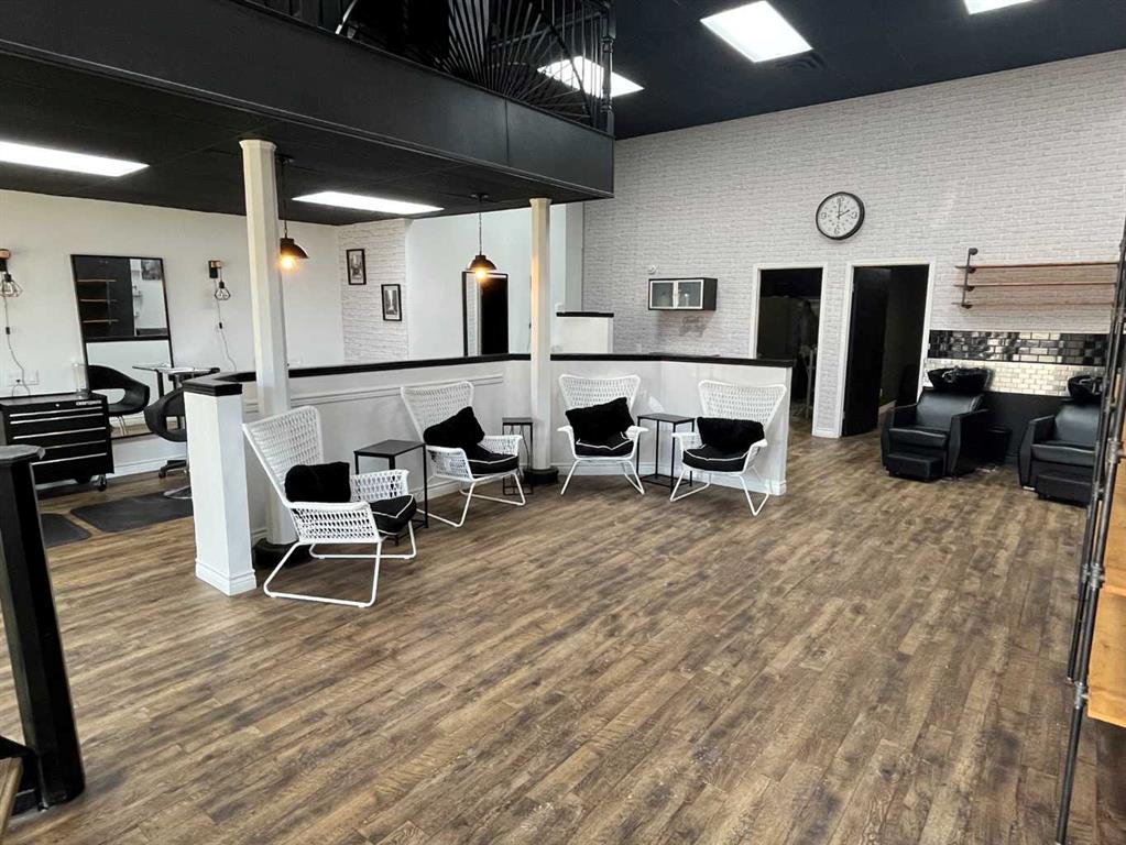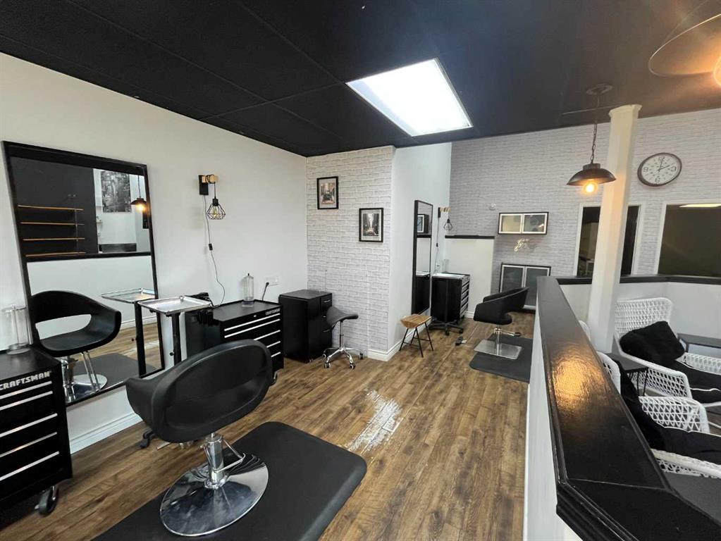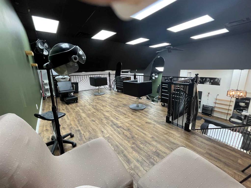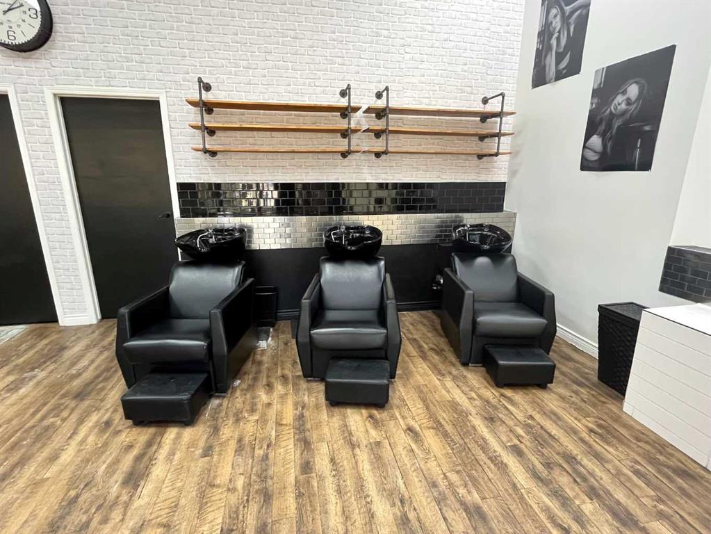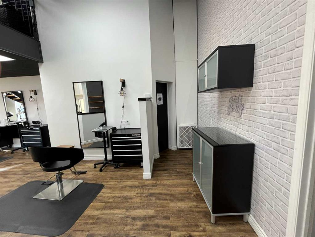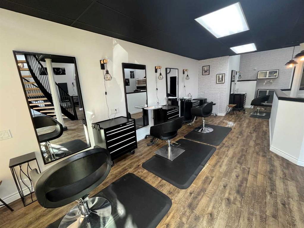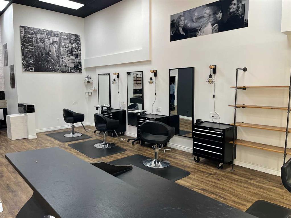 This 1,615 SF, fully built out, move-in ready salon located in Downtown Red Deer is available for lease. The unit features an open reception and waiting area, multiple stylist stations with mirrors, chairs, and storage, three main floor shampoo stations, a private washroom, a laundry room/mixing room, an additional room for services, and a mezzanine with two more stylist stations and another shampoo station. There are high-end fixtures throughout the space and large windows in the front that bring in plenty...