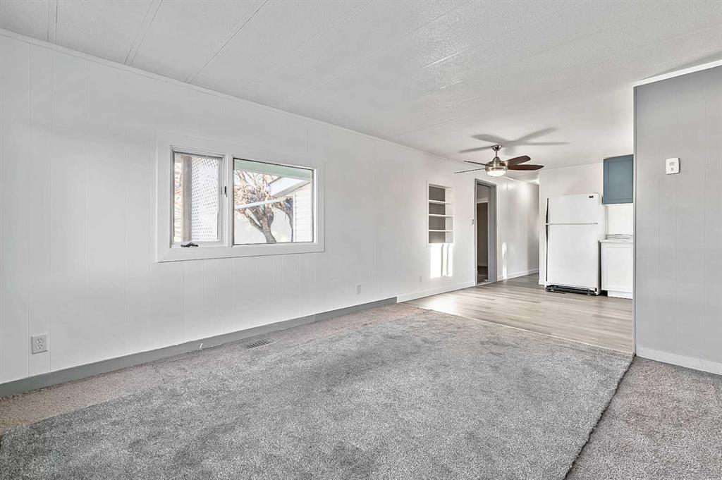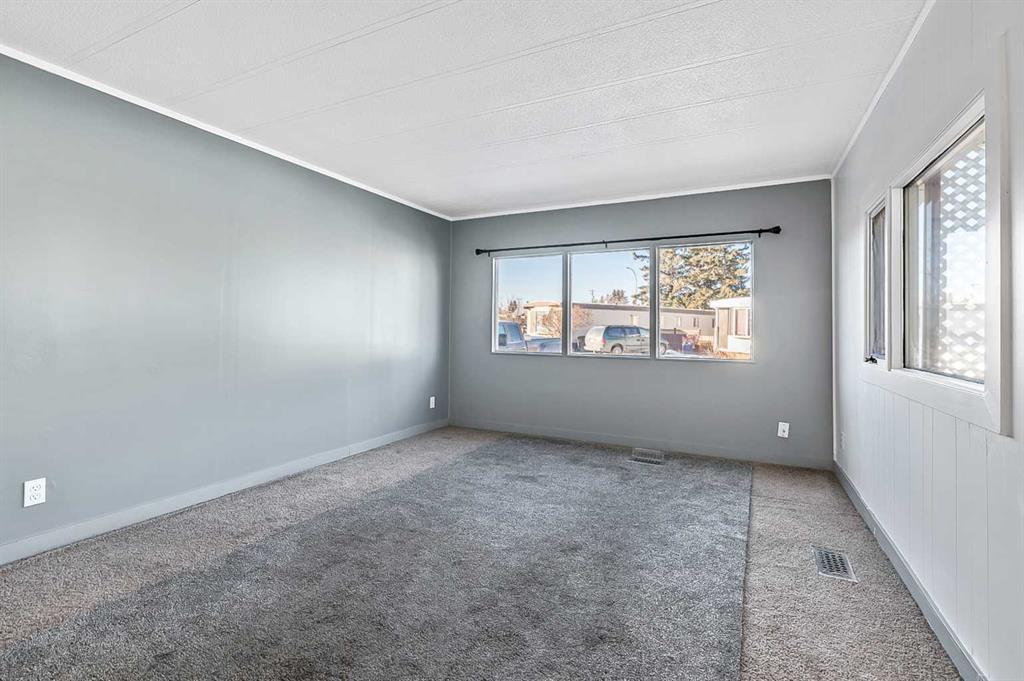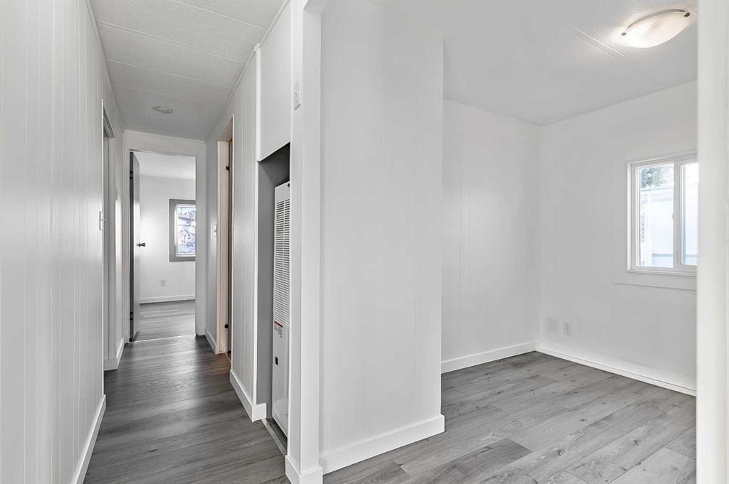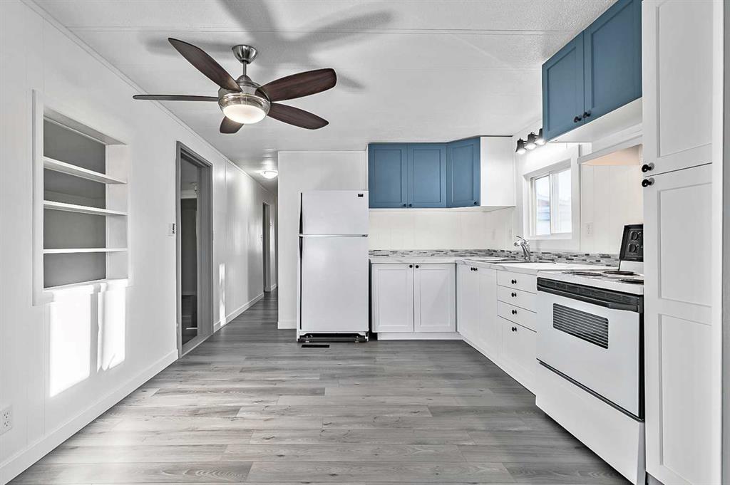 Welcome to Trails West Mobile Home Park located in the lovely community of Diamond Valley! This affordable mobile home is cute as a button and has just been renovated with a fabulous new kitchen, brand new flooring through out the unit, some windows have been replaced, new light fixtures, renovated 4-piece bathroom with laundry hook ups, and every room has been freshly painted. The furnace was replaced in 2021, and the roof shingles were replaced in 2018. There is a covered front porch leading to the genero...