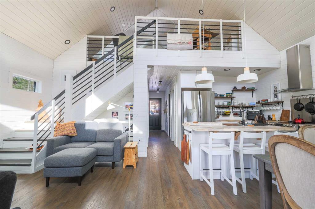 A cozy 2-bedroom, 2-bathroom A-frame home located in Nordegg, right at the base of Coliseum Mountain. The home features a loft-style primary bedroom with a mountain view, tall ceilings, and a warm fireplace for the winter months. The home is solar-ready, with solar wiring already installed, and the garage has solar hooked up. Propane lines are also in place and ready for connection to the garage. The property is built on an ICF foundation, providing excellent efficiency and durability. Inside, the basement ...