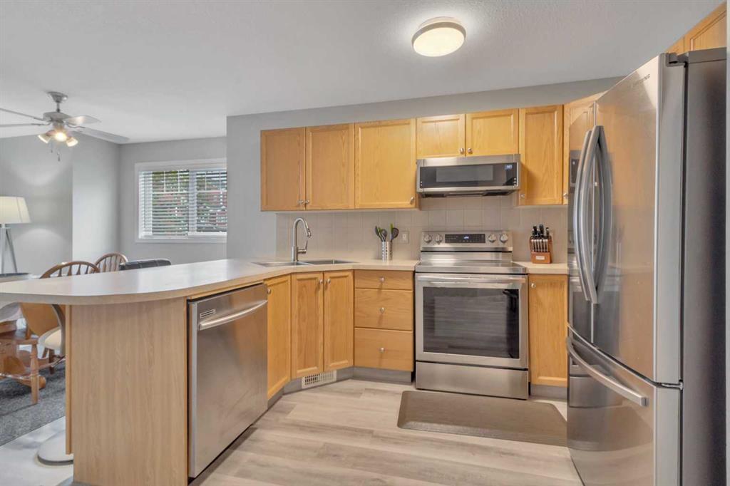 Welcome to this bright & beautifully updated single level, end-unit townhouse in sought-after Rainbow Park, Sylvan Lake! Just a short stroll to the beach, shops, & restaurants, this gem offers the perfect blend of convenience & comfort. With updated flooring & paint, step inside to a spacious, sun-filled open-concept layout. The living room features a corner gas fireplace & sliding doors to the deck with a gas line for BBQing—ideal for relaxing after a day by the lake, plus easy flow into the dining area f...