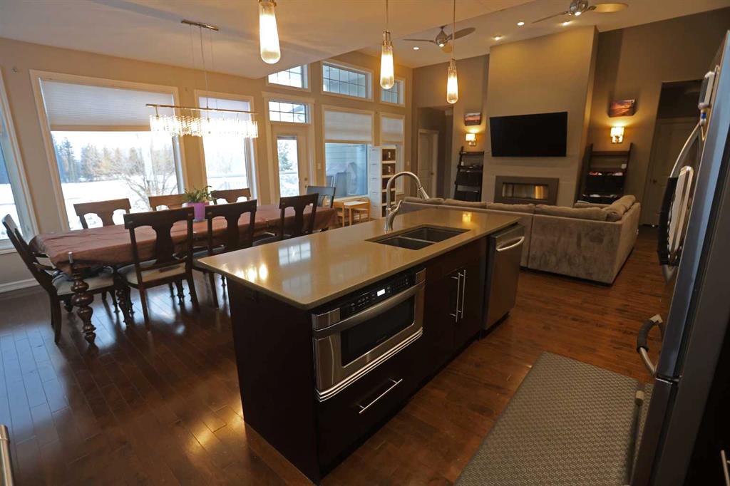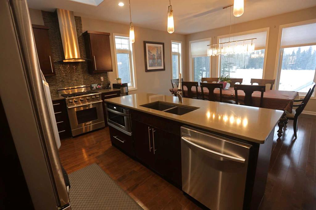 Executive bungalow living in Hinton’s premier golf course community. Built in 2010 by Jareth Homes, this beautifully appointed bungalow offers luxury finishes and a thoughtfully designed layout, all set against breathtaking west-facing views of the golf course and Rocky Mountain foothills. From the moment you step inside, you’ll appreciate the quality craftsmanship throughout, including hardwood flooring, soft-close cabinetry, in-floor heating, and a built-in sound system. Just off the front entry is a pri...