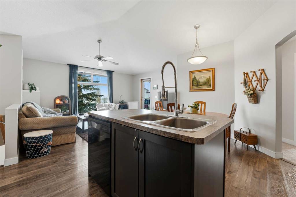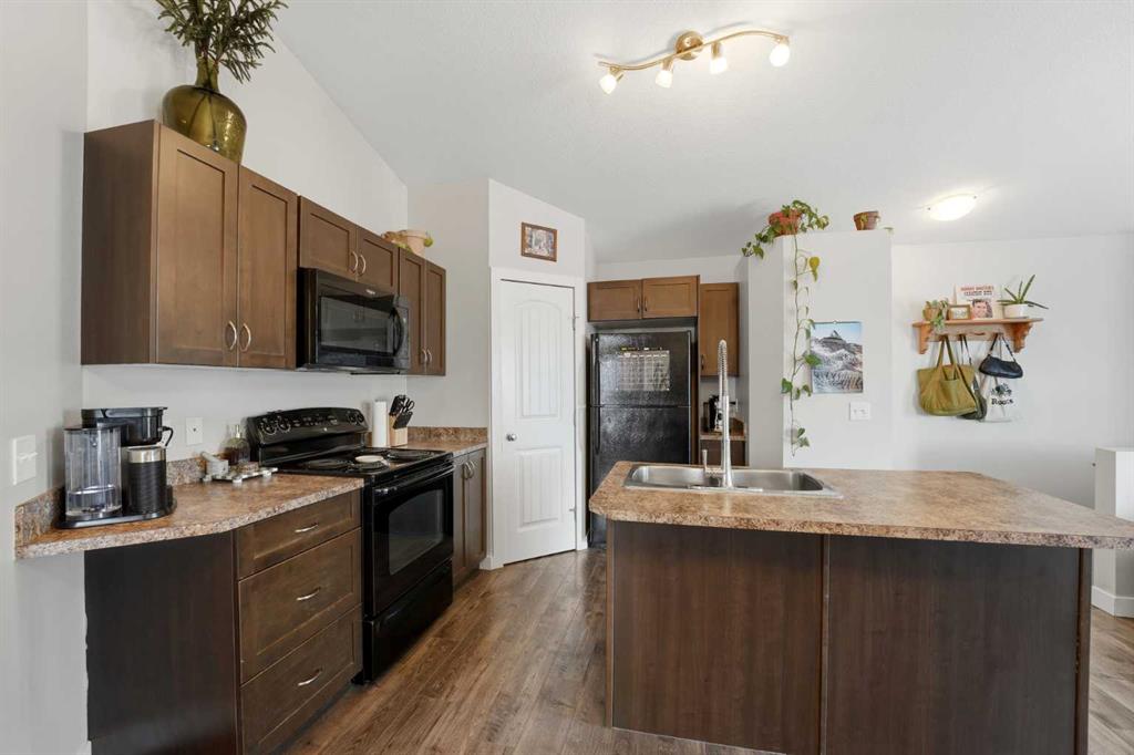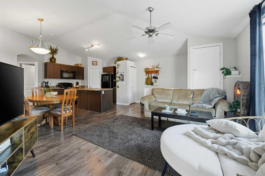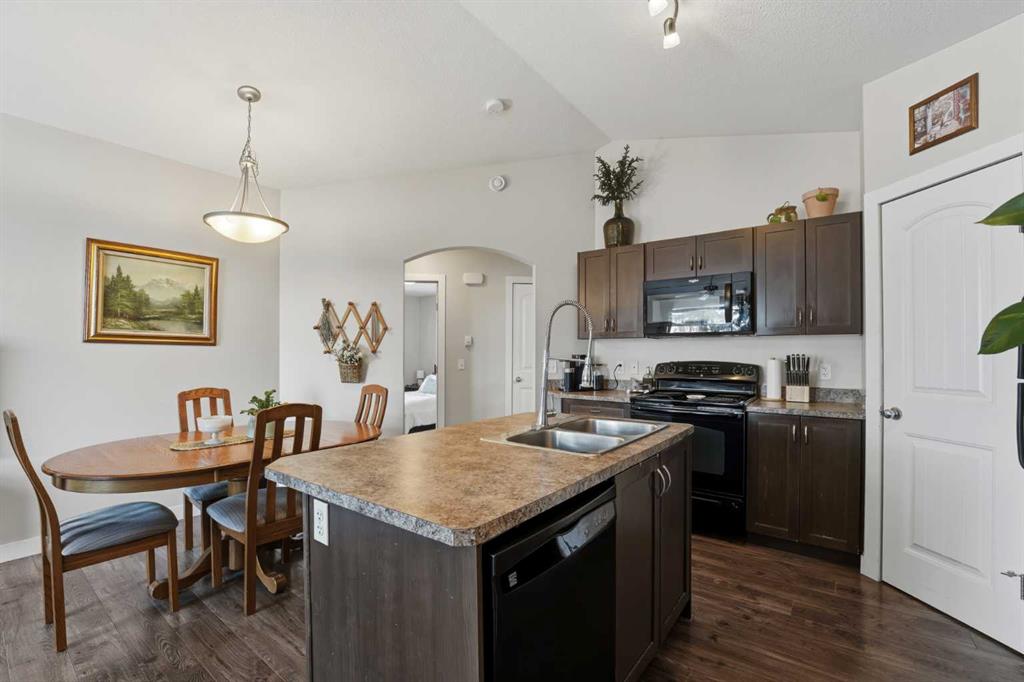 Great value for a modern, spacious home priced under $220,000 in Red Deer. This condo features a ground-level entrance with a foyer and stairs leading to the main living area. At the top of the stairs, you’re greeted by an open-concept kitchen, dining, and living space that feels especially bright and spacious thanks to the high vaulted ceiling and large living room window. The kitchen offers rich dark cabinetry, a centre island, a full pantry, and a black appliance package. The adjacent dining area provide...