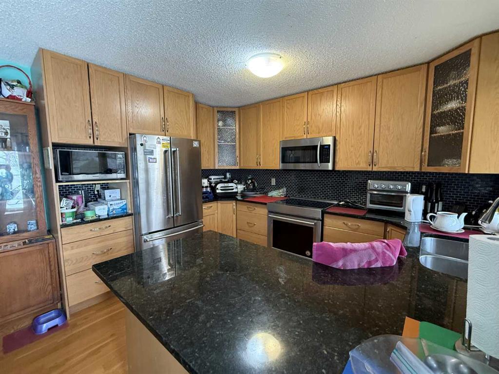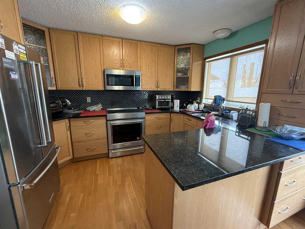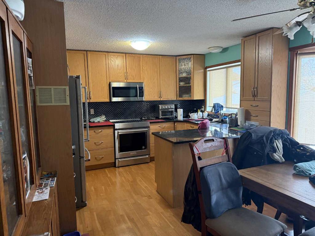 Welcome to this well-maintained 4-bedroom, 4-level split home, ideally located in a desirable area of Hanna with no neighbors behind and open field views. The upper level offers a spacious primary bedroom complete with a private 3-piece ensuite, along with two additional bedrooms and a full 4-piece bathroom—an ideal layout for family living. The main floor features a bright and inviting living room with a gas fireplace, perfect for relaxing evenings, and an eat-in kitchen that was updated approximately eig...