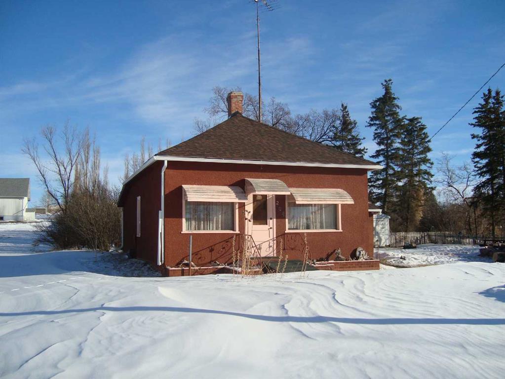 Cute and cozy with recent exterior upgrades, shingles, eavestroughing, facia and sofit. 2 Bedroom with 3rd converted to main floor laundry, west facing large living room. All 8 appliances come with the home. Mature trees and bushes on the 3 lots together. A 10 x 20 covered patio ajoined to the home, an older garage and a storage shed. Enough room to live in this while building your new home in this quite friendly community.