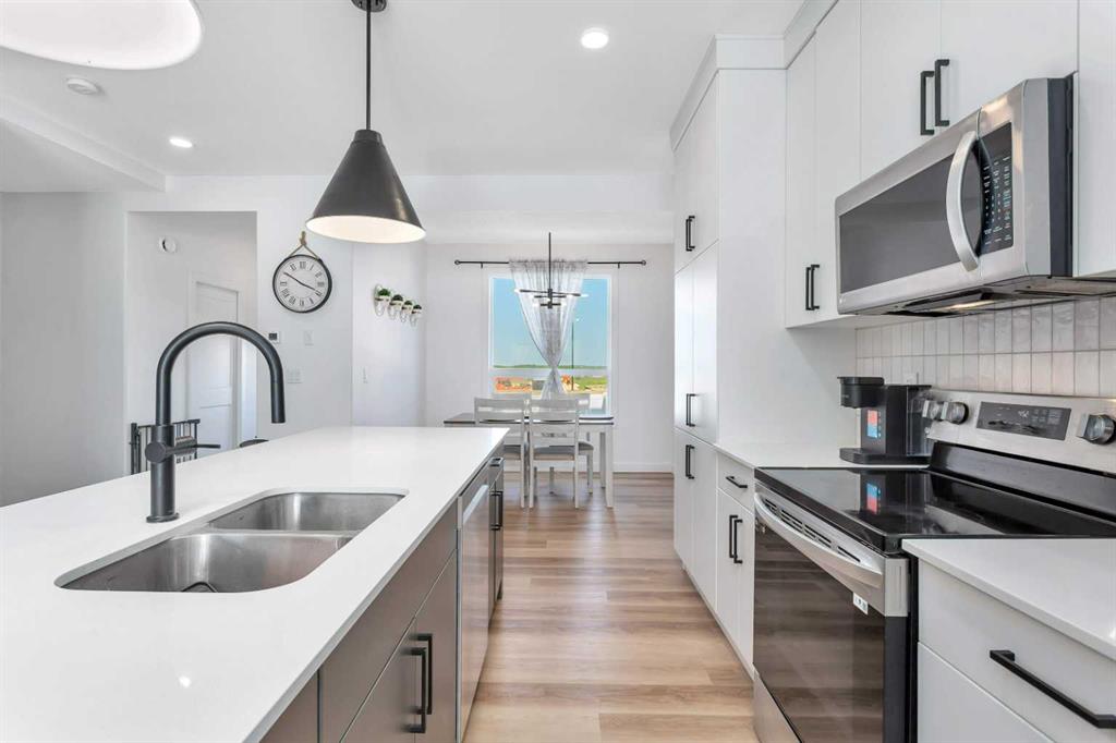 END UNIT with A/C and March 1 possession available. Stylish, spacious, and modern 2-storey townhome in the new community of Iron Gate, offering low-maintenance living and peace of mind with Alberta New Home Warranty still in place. Enjoy your charming 7' x 7' front deck before entering a bright, open-concept main floor filled with natural light from large energy-efficient triple-pane windows. Durable vinyl plank flooring runs throughout the main level, while plush carpet upstairs adds warmth and comfort. Th...