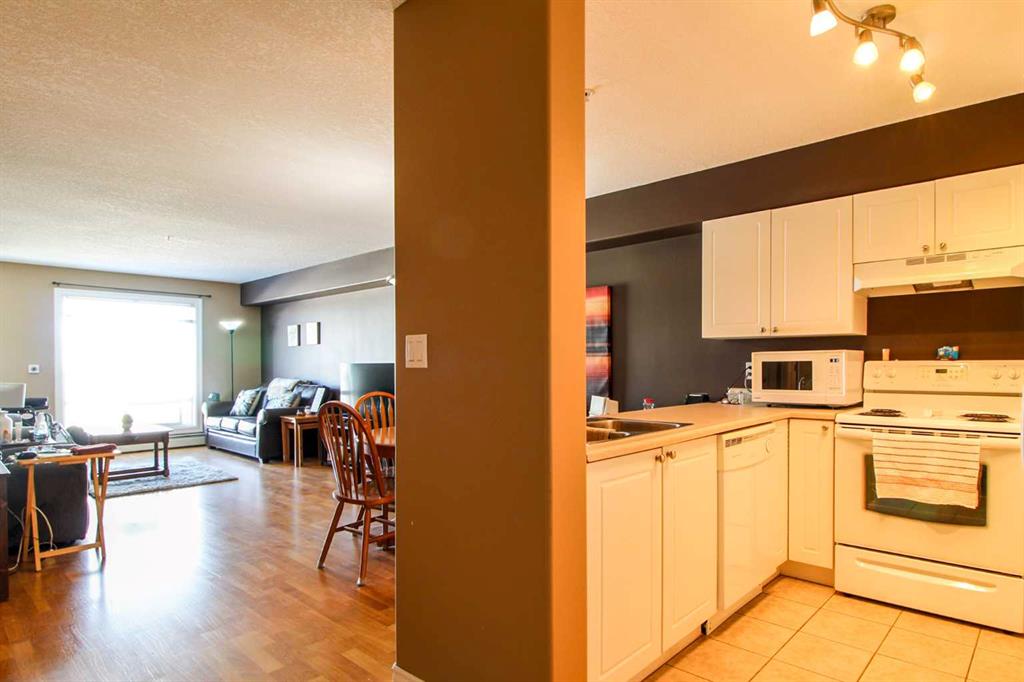 Whether you are searching for your first home, needing a home for retirement, looking for a low maintenance property or wanting a rental property, this unit may be the one for you! Take the elevator or stairs to this third-floor condominium. The well-maintained unit features an open concept kitchen, dining room and living room layout. It offers 1 - bedroom, 1 - 4-pc bathroom, convenient in-suite laundry, neutral paint colors and an East facing balcony. Appliances are included. There are two parking stall...
