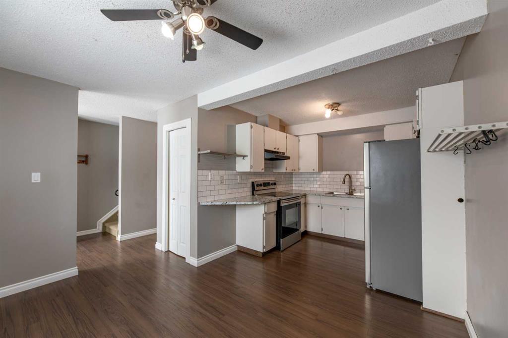 This Carriage Lane condo offers a developed walk-out basement along with a nicely updated kitchen including newer countertops and stainless appliances. There are 3 bedrooms upstairs with the master being very spacious and adjacent to the updated 4pc bathroom. On the main level, the living room is at the rear and offers an elevated view of the foothills along with a gas fireplace. At the front, the kitchen and dining room benefit from a functional layout and the main floor also has a half bath. The lower...