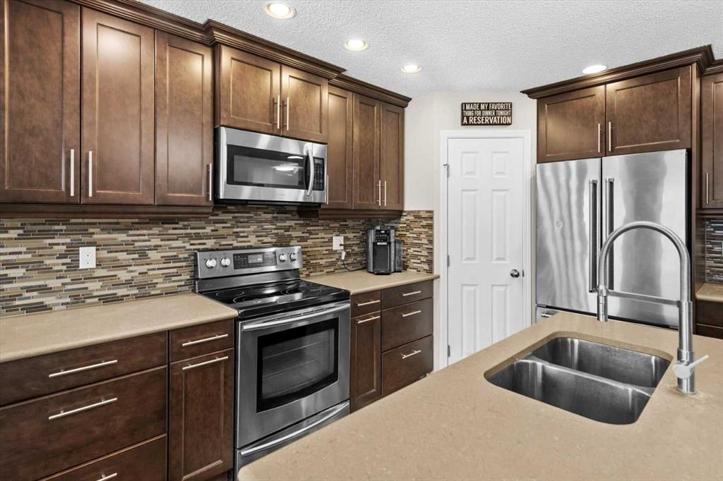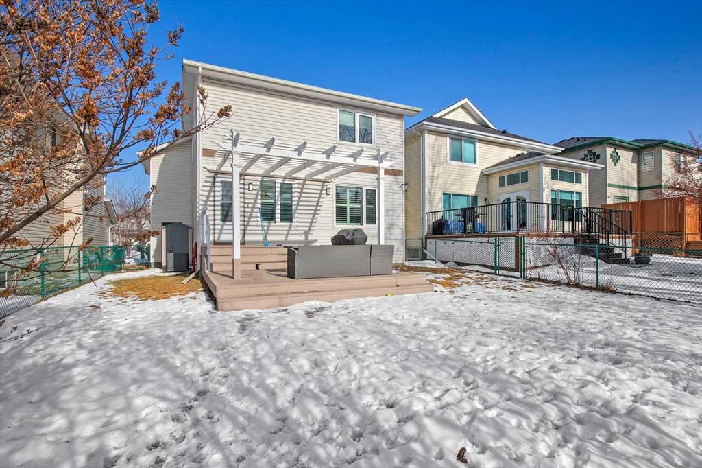 Beautiful two-storey home in Douglasdale offering 4 bedrooms (3 up, 1 down), 3 full bathrooms, and a double attached garage. The main level welcomes you with a spacious foyer leading into an open-concept kitchen featuring quartz countertops, premium appliances, and updated lighting. The kitchen overlooks the living room with new vinyl plank flooring (Feb 2026) creating a bright and functional space for everyday living and entertaining. Step outside from this level to a low-maintenance vinyl deck overlookin...