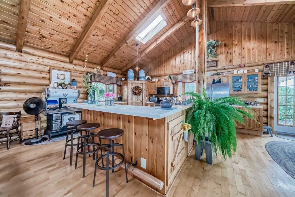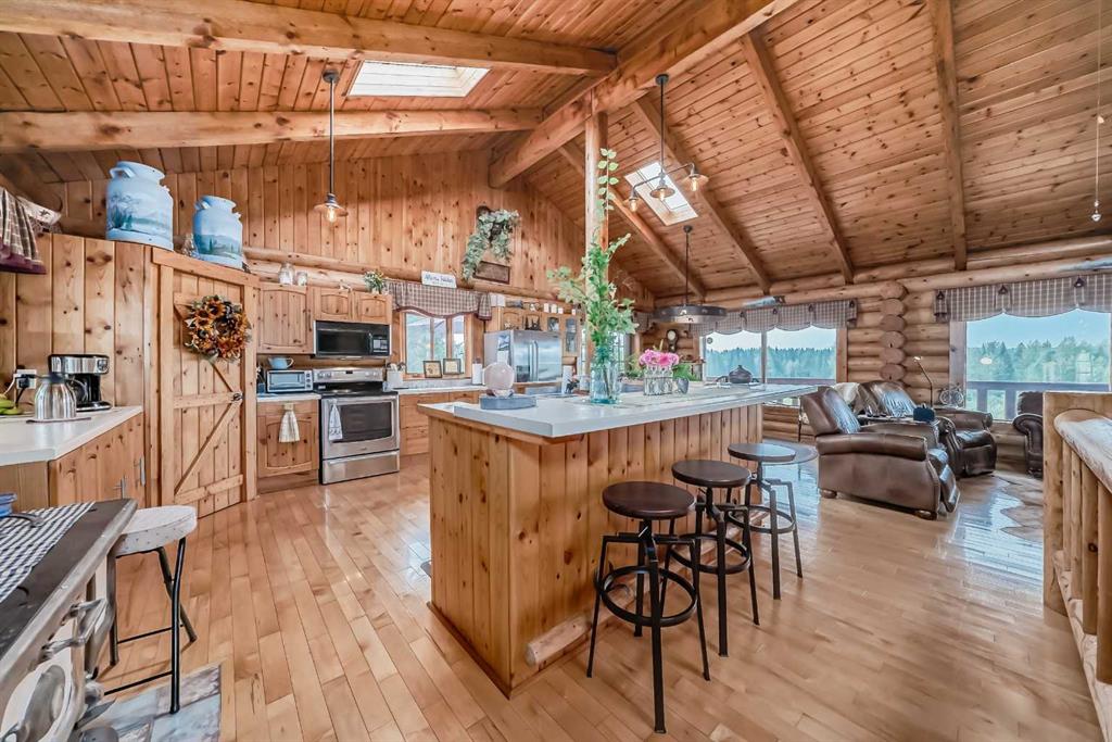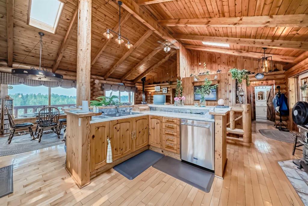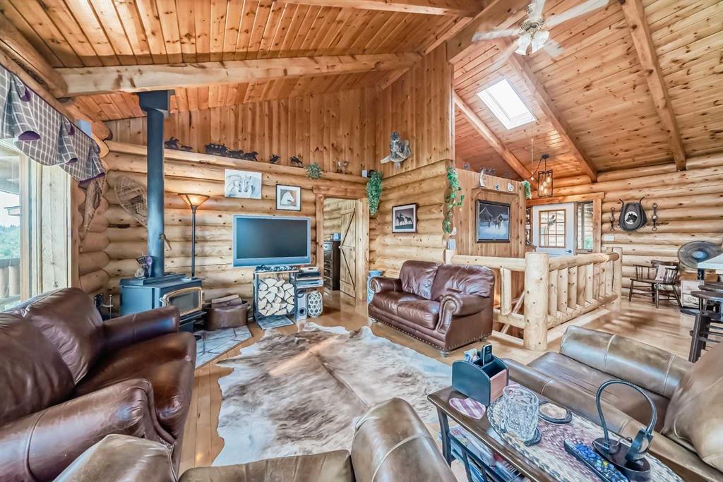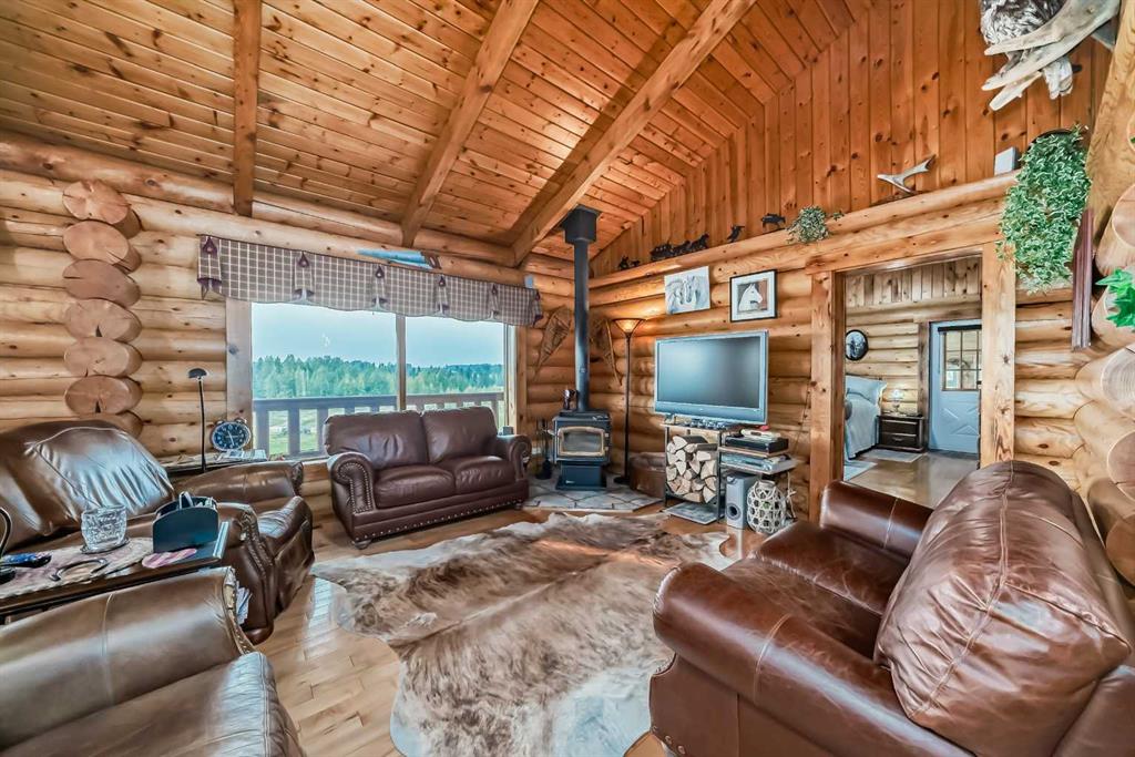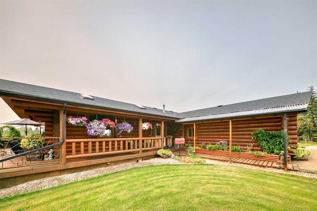 There won't be a moment that you won't say "wow" to this award winning acreage when you drive into this sensational property located on pavement at the end of a dead end road close to Rocky Mountain House and Caroline. Nestled within the trees, this beautiful log bungalow has "Welcome": written all over it. From the exceptional landscaping, to the outdoor amenities to the one in a million view of the Clearwater River, this hand crafted log home has been exceptionally built and maintained. The wrap around...