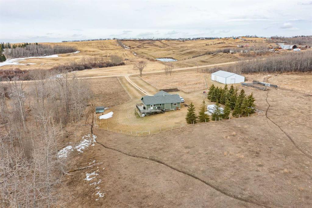 Acreage living at its finest! This stunning bungalow with a fully developed walkout basement is perfectly situated on 20 acres zoned AG, just 15 minutes from Lacombe—offering the ideal blend of privacy, space, and convenience. Custom built and thoughtfully designed, the home features an open-concept kitchen, dining, and living area with expansive windows that capture breathtaking views to the east, south, and west. The main floor offers 1,284 sq ft of comfortable living space, while the walkout basement ad...