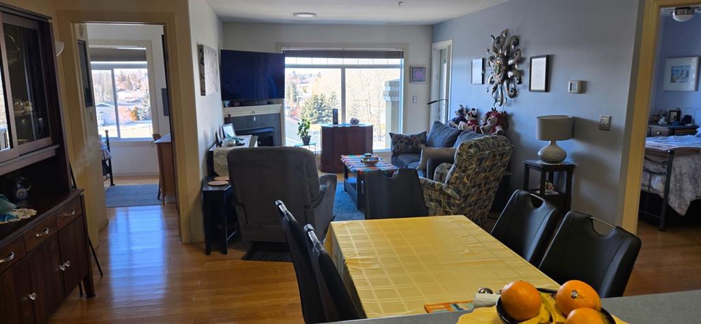 Come and check out this executive style condo that has been beautifully updated in the sought after Chateau Lacombe! Close to all of Lacombe's downtown amenities . This top floor west facing unit has 2 generous bedrooms , 2 bathrooms and adequate laundry room with awesome storage space. The open-concept layout showcases lovely hardwood flooring in the living room and tile in the kitchen. The bright and inviting kitchen offers an island and an abundance of cabinetry,& flowing seamlessly into the spacious l...