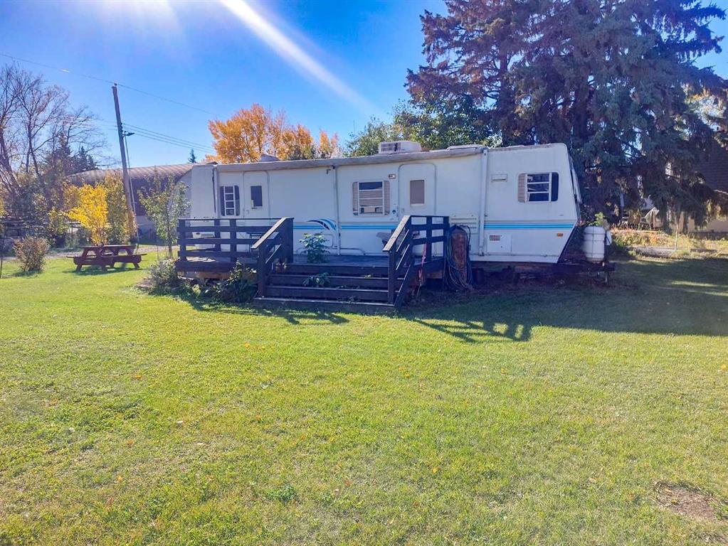 This unique property offers three adjoining lots in the quiet village of Donalda, providing flexibility, space, and a peaceful setting. One lot features a large, well-equipped shop with two garage doors, a furnace, hot water, wood stove, bathroom, overhead storage, and ample cabinetry. The shingles on the shop were done in 2021. The shop has a 15'8'x40' lean-to that provides additional covered storage space—ideal for equipment or recreational toys. The second lot includes an RV with deck, perfect for weeken...