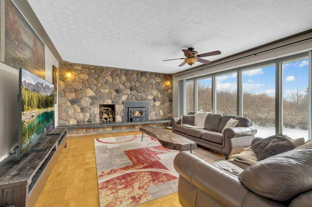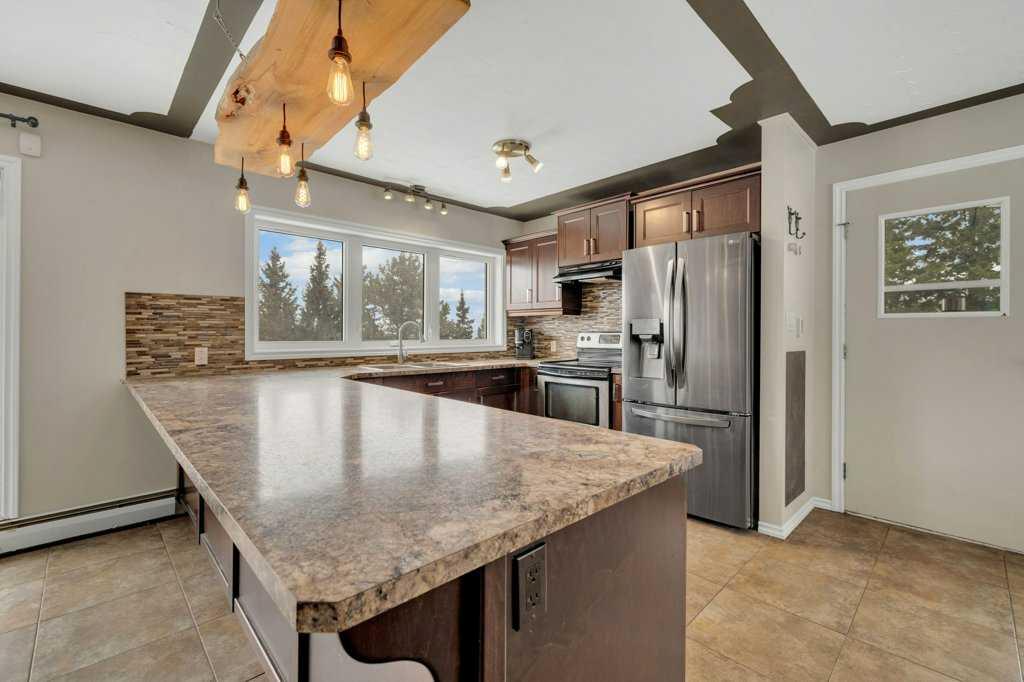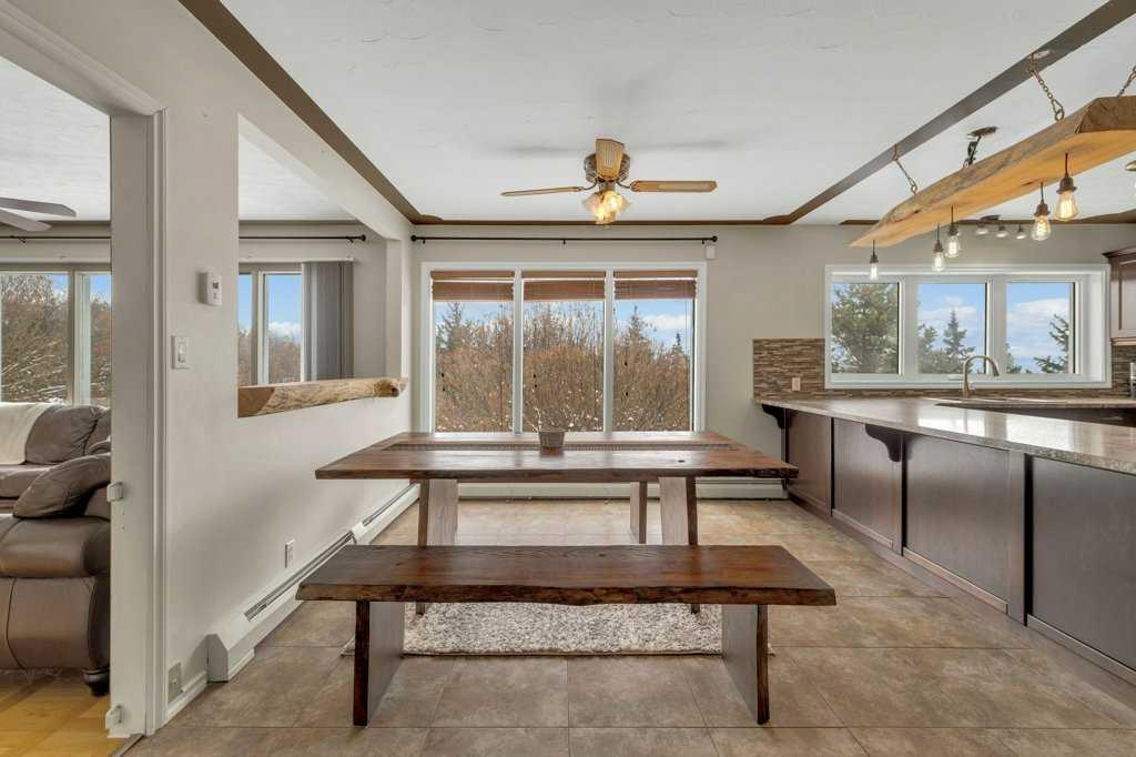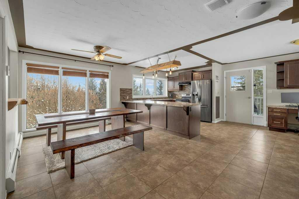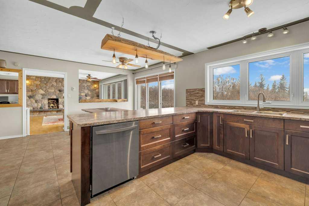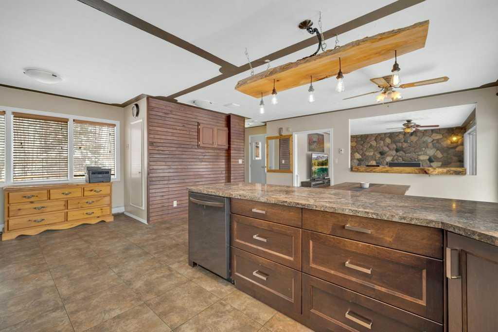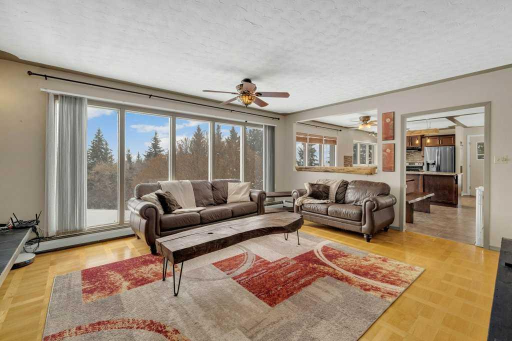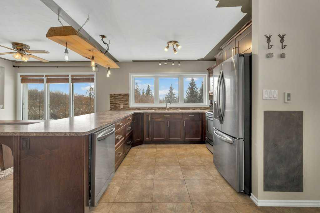 Welcome to this 2.7 acre acreage overlooking the beautiful Blindman River Valley, offering peaceful country living just minutes from the Town of Rimbey. This 3 bedroom, 2 bathroom bungalow with a walkout basement combines comfortable living space with scenic views and excellent flexibility for a variety of lifestyles. The main floor features warm cabinetry complemented by a raw wood eating bar light and ledge, creating a welcoming focal point in the kitchen. Expansive windows in both the kitchen and living...