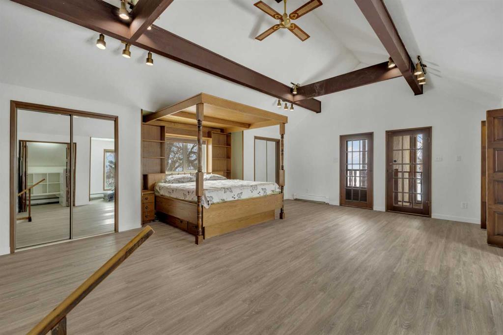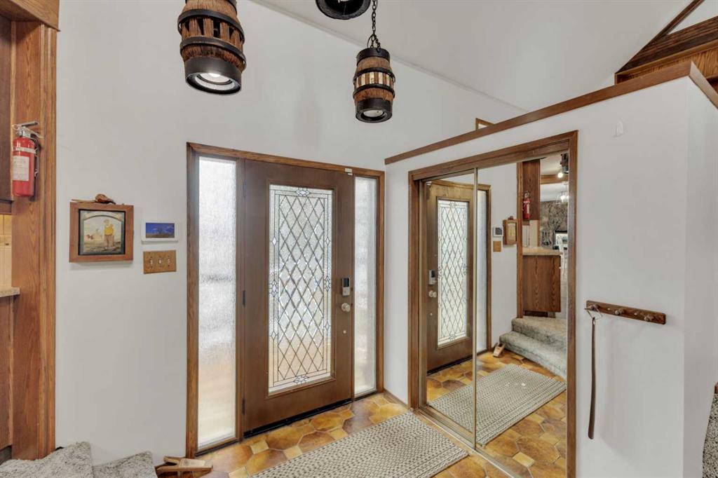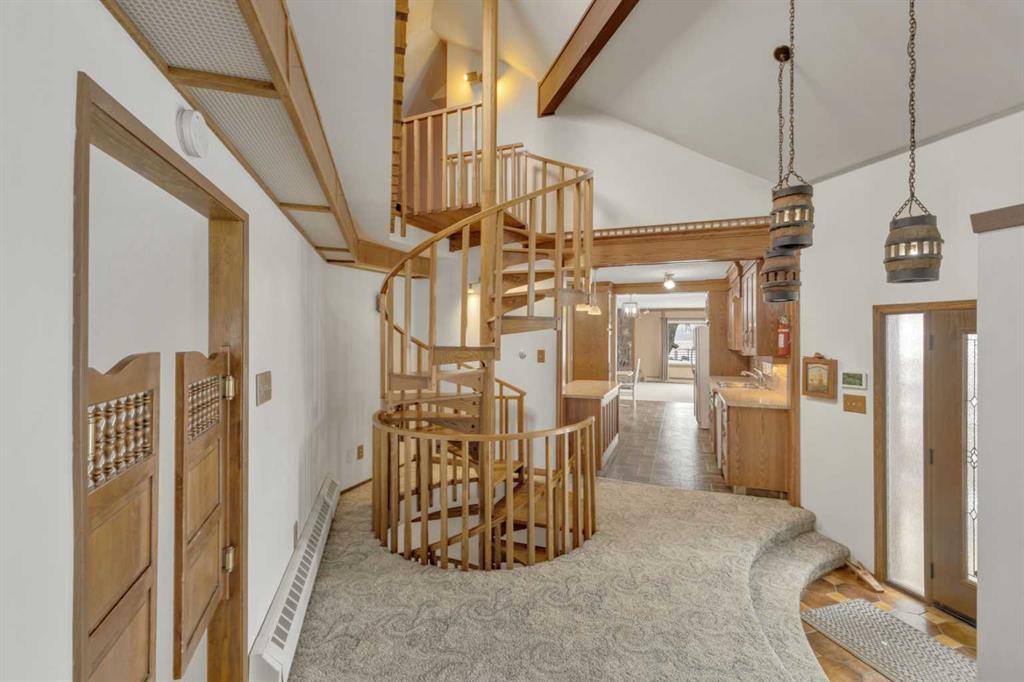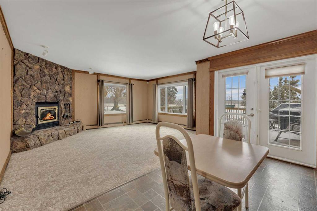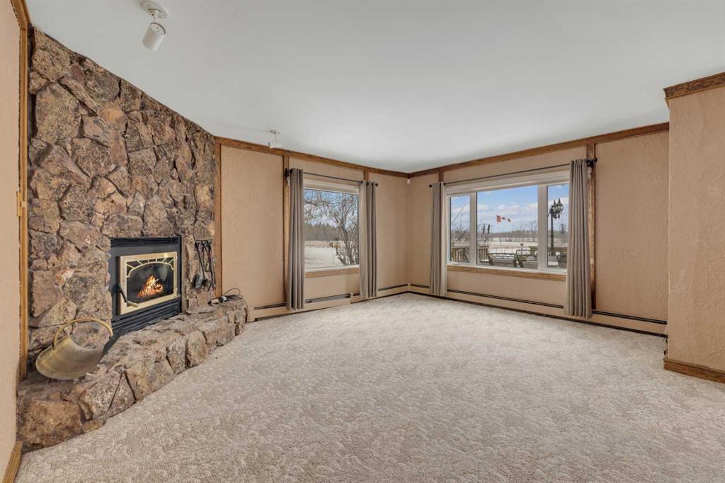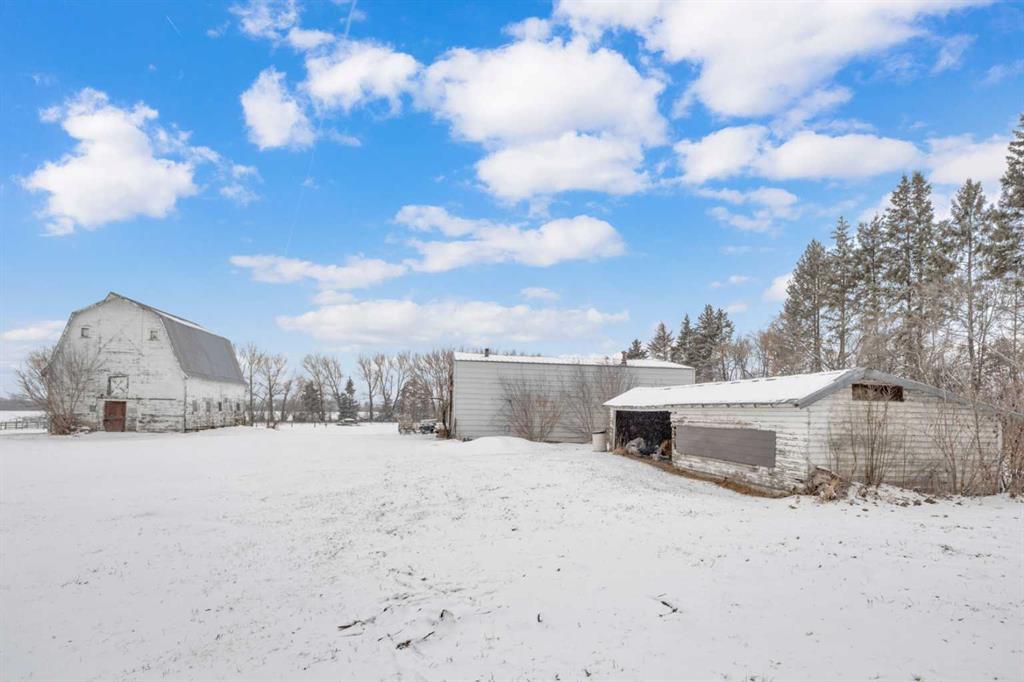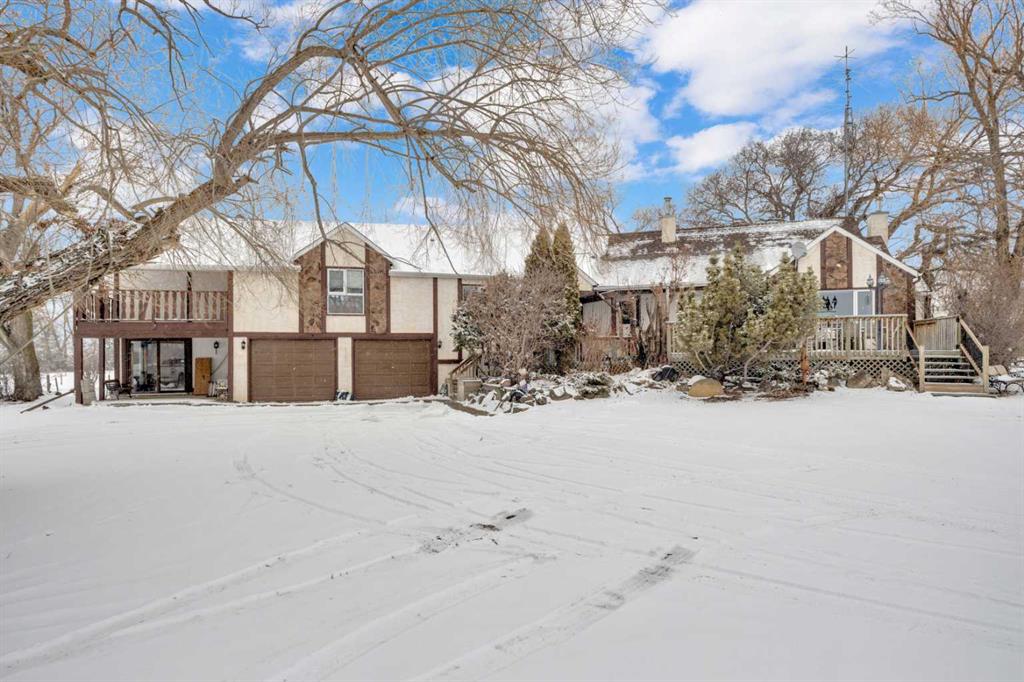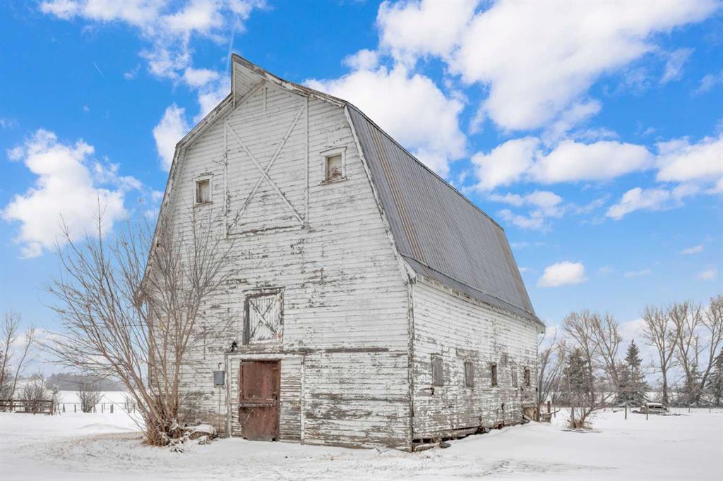 NOT IN a subdivision and NO IMMEDIATE neighbors. An incredible opportunity 30 YEARS in the making!! Just under 7 Acres of flat, usable land with an incredible shelterbelt. This updated character home blends charm and function, featuring stunning oak spiral staircase, Colorado stone fireplace and major upgrades throughout (kitchen-2015, windows & roof-2021, paint, flooring-2024 and more!). Newer front and rear decks on steel screw pile anchors, and everything outside you need for livestock, horses and the me...