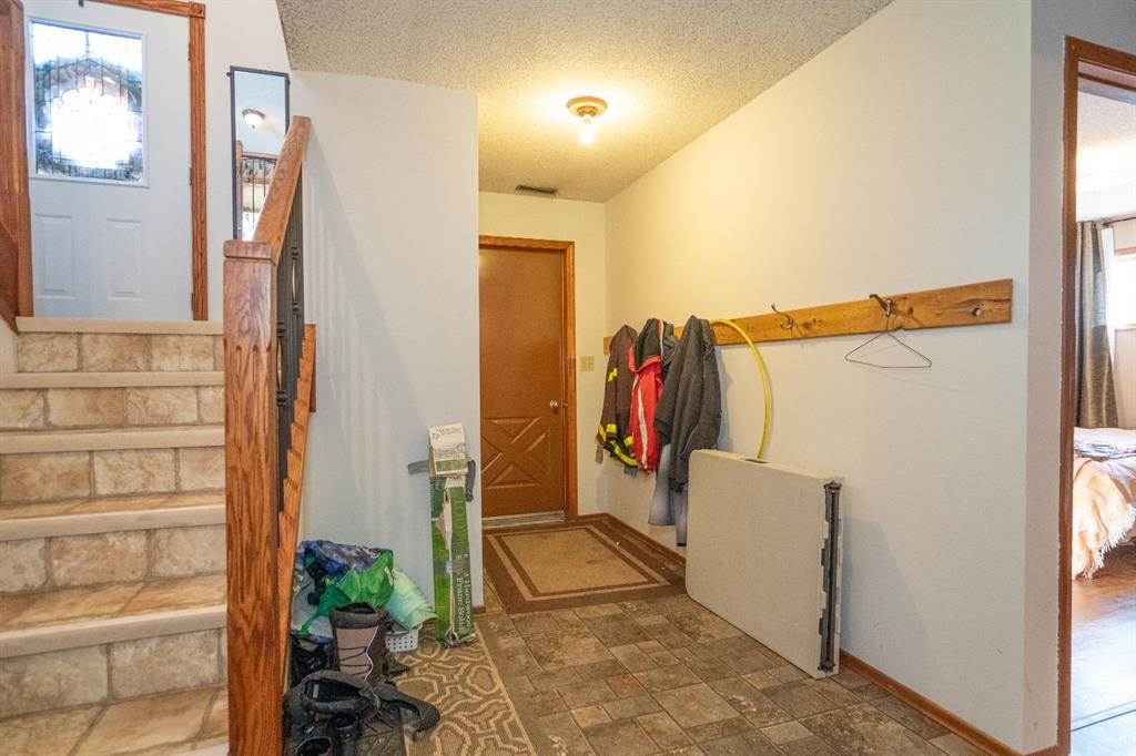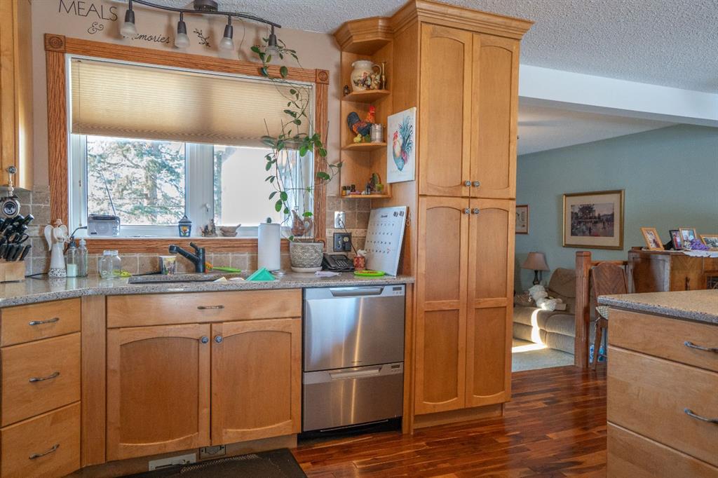 WELCOME TO CLIVE! One of the most dynamite lots in town with an attractive bi-level home, ideal for a family or a really tight group of friends. The kitchen is large and custom, the owner is a heck of a cook and you can see why, the open concept kitchen opens onto the front room overlooking the neighbourhood, or you can step down into the drop den and enjoy the cozy wood burning stone. Patio doors open onto the terraced back deck and what a view of your yard from here - spectacular! Three bedrooms on the up...