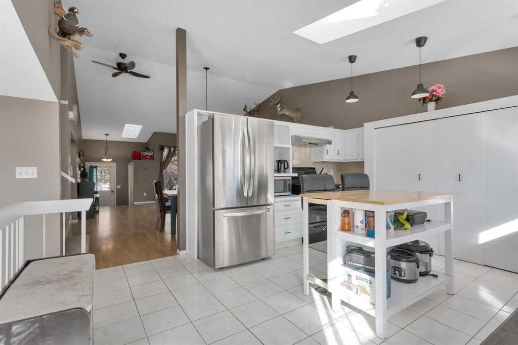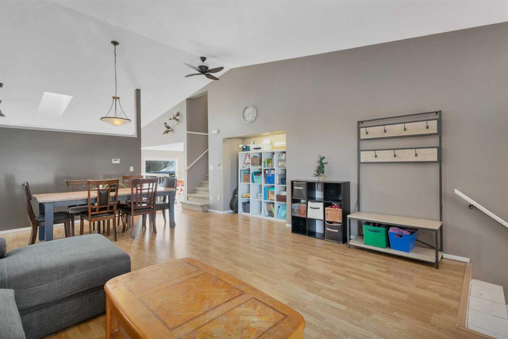 Welcome to this spacious and character-filled 1.5 storey home in beautiful Lacombe offering 4 bedrooms and 3.5 bathrooms with plenty of room for family living and entertaining. A large welcoming foyer leads into the bright main living area featuring soaring vaulted ceilings and 2 SKYLIGHTS that fill the space with natural light. The adjoining dining area is ideal for hosting family dinners and gatherings. The bright white kitchen offers well-maintained appliances, a large pantry, and plenty of space for th...