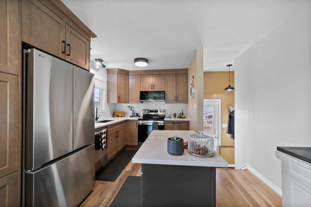 Welcome to this beautifully updated bungalow on a spacious corner lot in the heart of Daysland! This well-kept home offers fantastic value with a detached double garage and a layout that works perfectly for first time buyers, downsizers, or anyone seeking comfortable small-town living just 25 minutes from Camrose. Step inside to an inviting open concept main floor, featuring a brand-new kitchen with quartz countertops and a seamless flow into the dining and living rooms. The updated light fixtures, fresh pa...