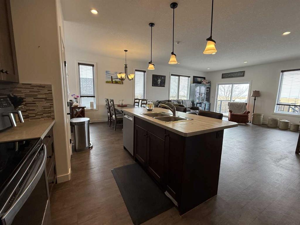 Welcome home! This beautifully newly built home is perfectly situated on a spacious double lot on the north side of Delia, offering privacy and uninterrupted views with no neighbours behind—just open farmland and stunning prairie sunsets. Imagine relaxing on your back deck while watching the canola fields in bloom. Step inside to a bright, open-concept layout featuring a seamless flow between the kitchen, dining, and living areas, all enhanced by large windows and impressive 9’ ceilings that continue throug...