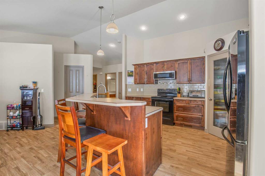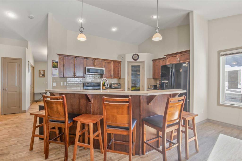 Welcome to this lovely finished bungalow style, half duplex, ideally located just steps away from Dodds Lake in Innisfail. Backing onto a peaceful green space and surrounded by walking trails, this home offers the perfect blend of comfort, functionality and lifestyle. The Main floor features a bright and inviting layout with two spacious bedrooms and two full bathrooms, including a well appointed primary suite. The open concept kitchen is designed for both everyday living and entertaining, complete with a l...