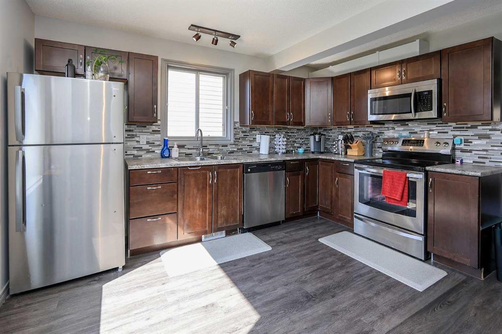 FULLY DEVELOPED 2-STOREY ~ 4 BEDROOMS, 2 BATHROOMS ~ SUNNY WEST FACING BACKYARD W/NO NEIGHBOURS BEHIND ~ Covered entry leads to a welcoming foyer ~ The living room features large east facing bay windows and opens to a formal dining space ~ The kitchen offers a functional layout with ample cabinet and counter space, full tile backsplash, window above the sink, stainless steel appliances, and a large west facing window that fills the space with natural light ~ Mud room off the kitchen has a separate entry wit...